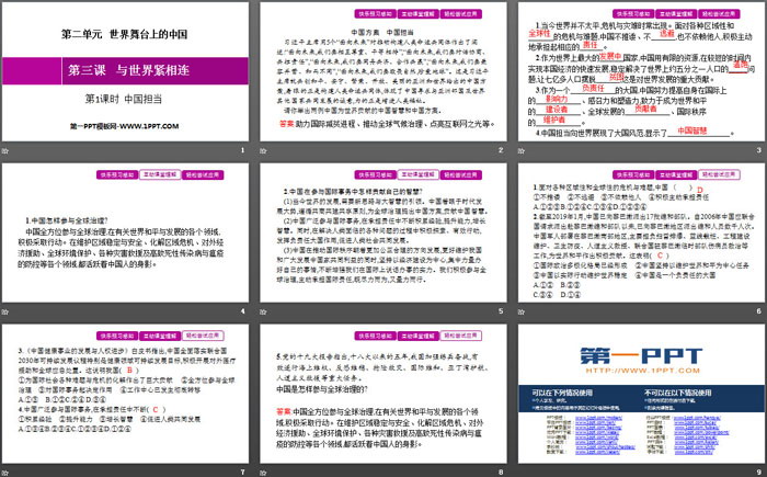 关键词:人教版九年级下册道德与法治PPT课件免费下载,与世界紧相连PPT下载,世界舞台上的中国PPT下载,中国担当PPT下载,.PPT格式;
