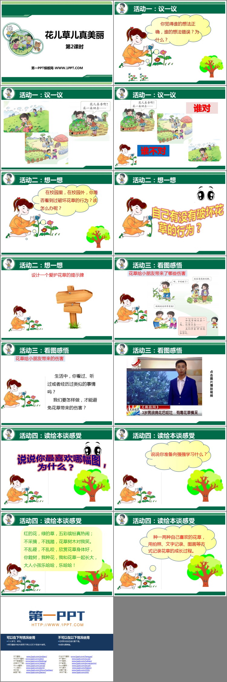 部编版一年级道德与法治下册《花儿草儿真美丽》PPT下载(第2课时),共15页。