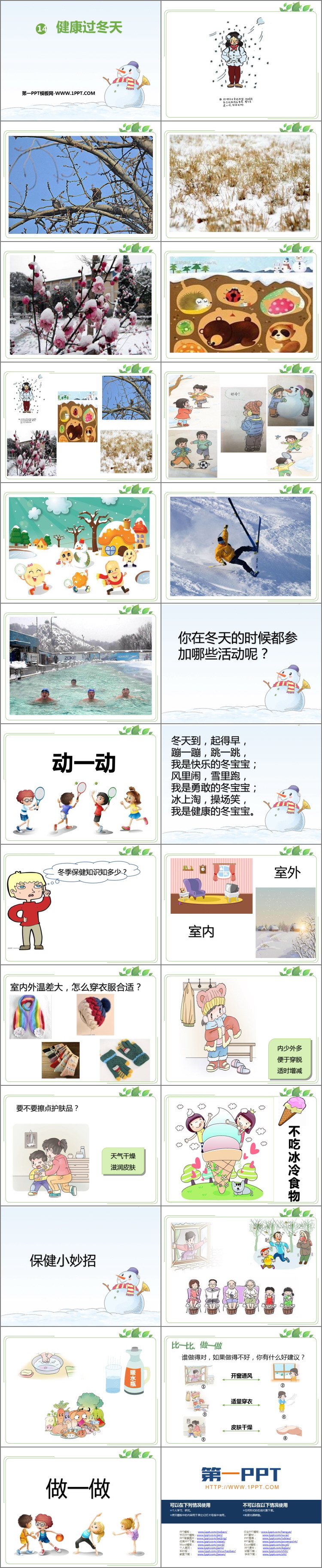 《健康过冬天》PPT课件包含动一动、保健小妙招、做一做等内容。