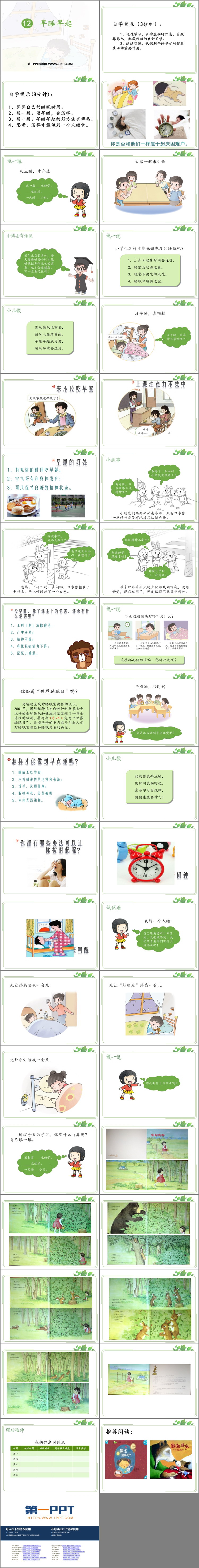 《早睡早起》PPT课件包含自学重点、填一填、小故事、课后延伸等内容。