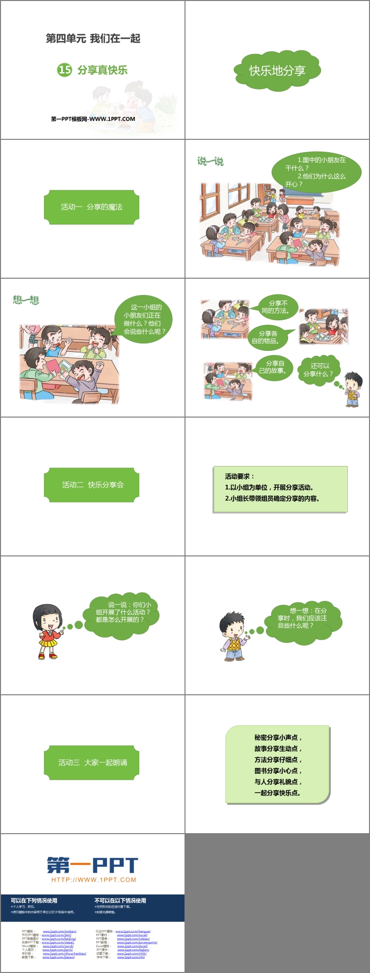 《分享真快乐》PPT课件包含快乐地分享、课堂活动等内容。