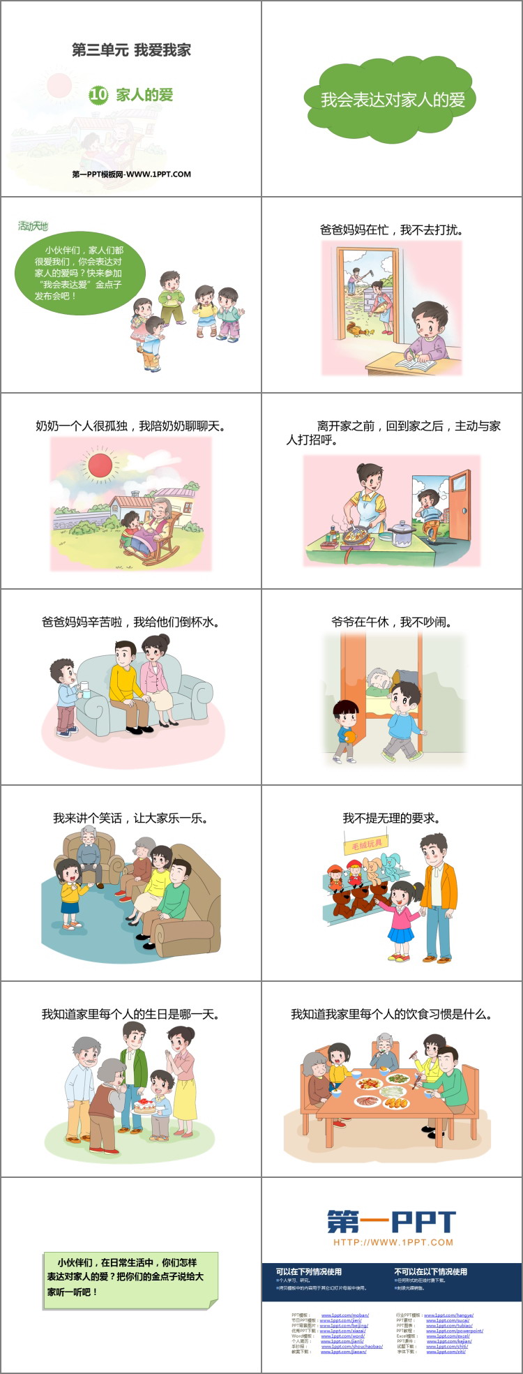 部编版一年级道德与法治下册《家人的爱》PPT课件下载,共14页。