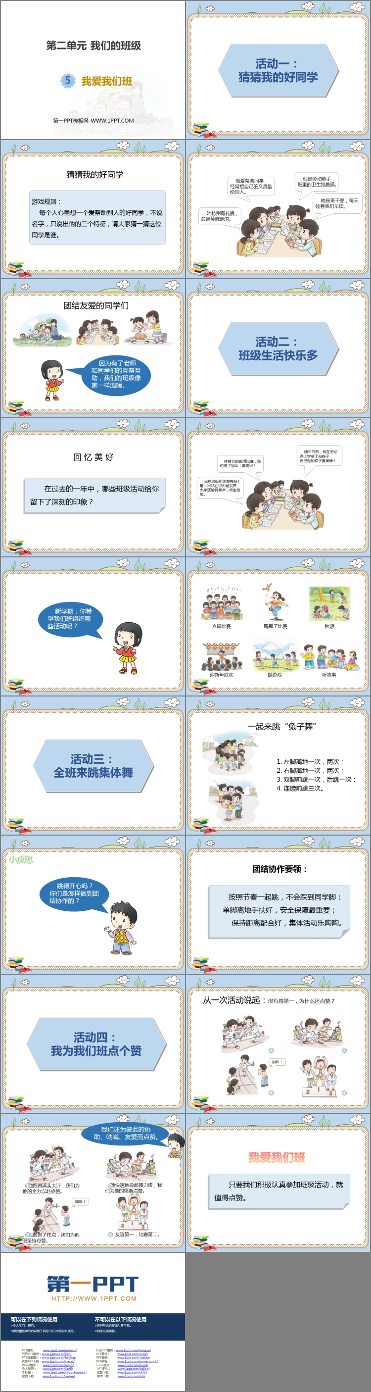 《我爱我们班》PPT课件包含课堂活动、课堂延伸等内容。