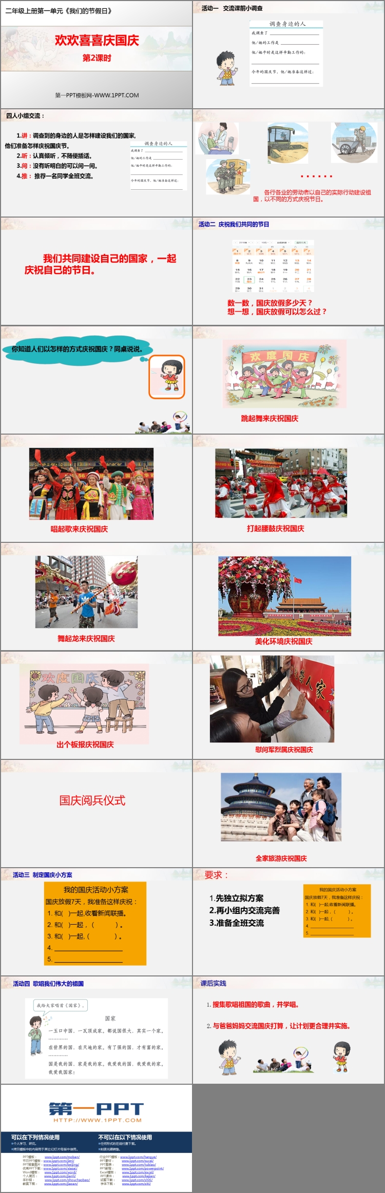 《欢欢喜喜庆国庆》PPT课件包含课堂活动、课后实践等内容。