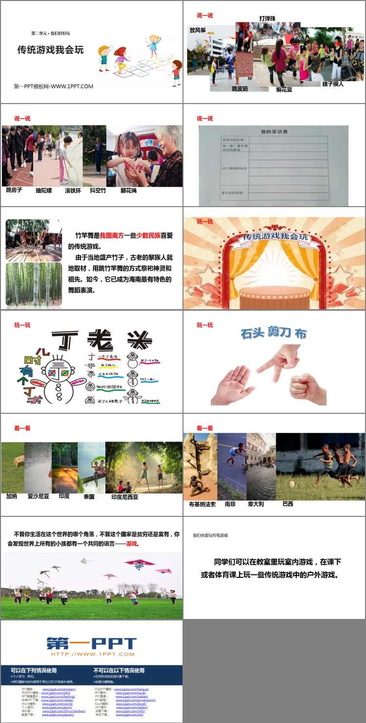 《传统游戏我会玩》PPT课件包含说一说、玩一玩、看一看等内容。
