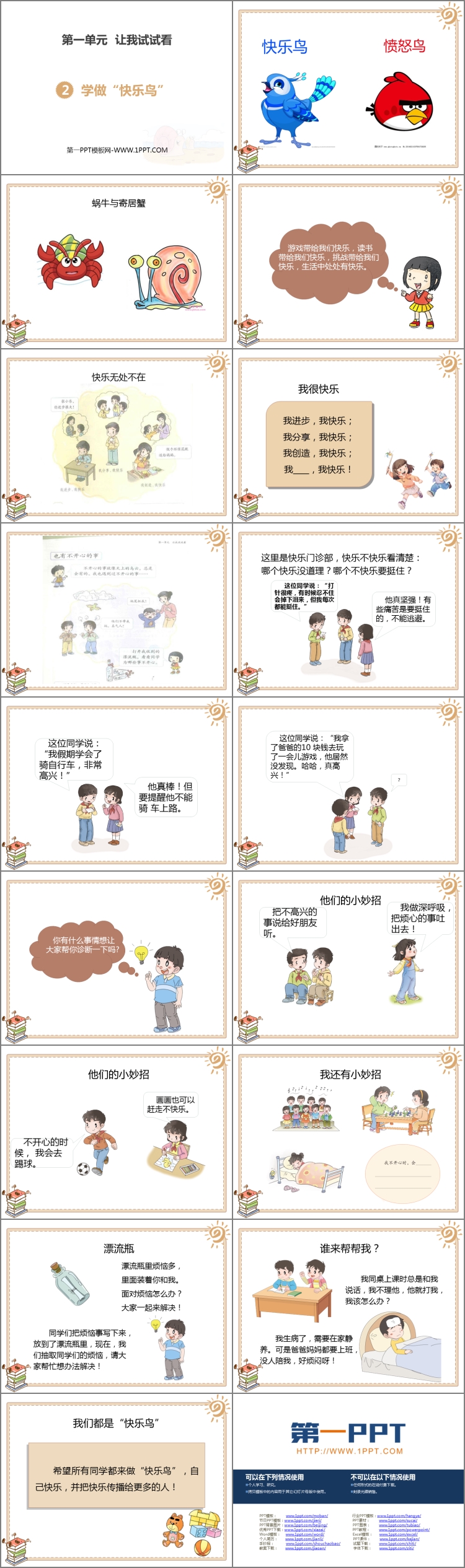 《学做“快乐鸟”》PPT课件包含快乐无处不在、他们的小妙招、谁来帮帮我等内容。