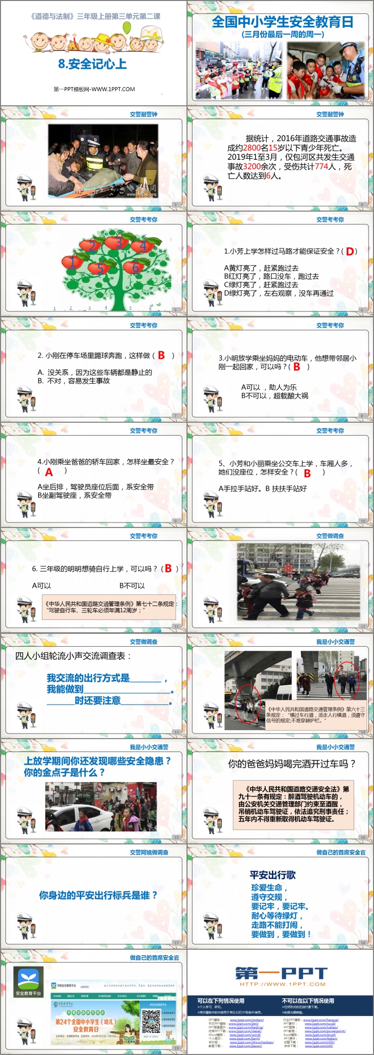 部编版三年级道德与法治上册《安全记心上》PPT下载,共20页。