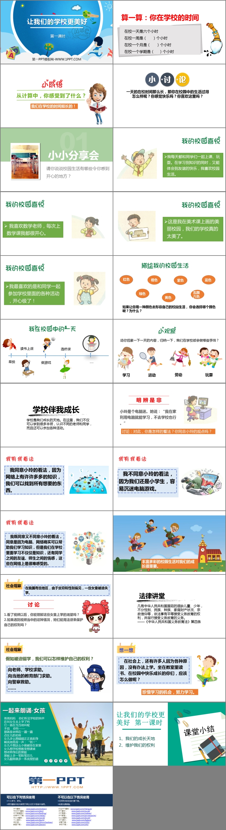 《让我们的学校更美好》PPT课件包含小感悟、小讨论、小小分享会、学校伴我成长、社会观察、课堂小结等内容。