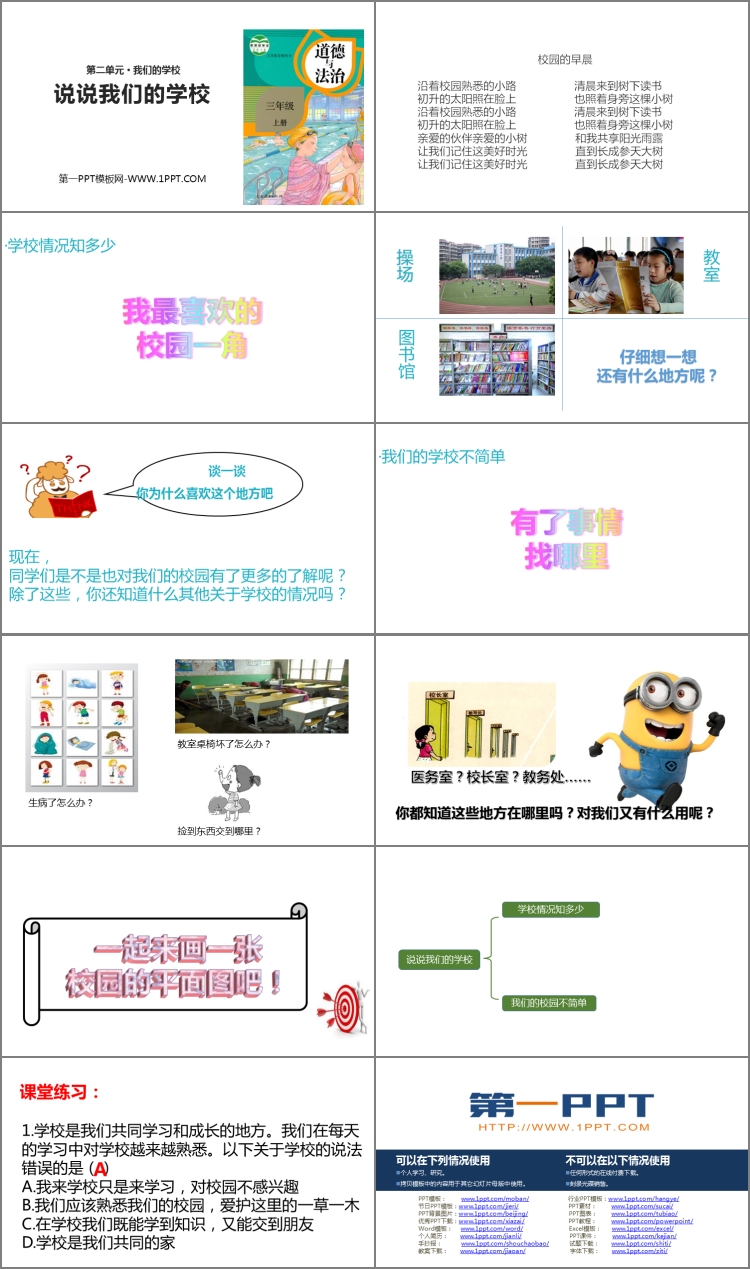 部编版三年级道德与法治上册《说说我们的学校》PPT下载,共12页。