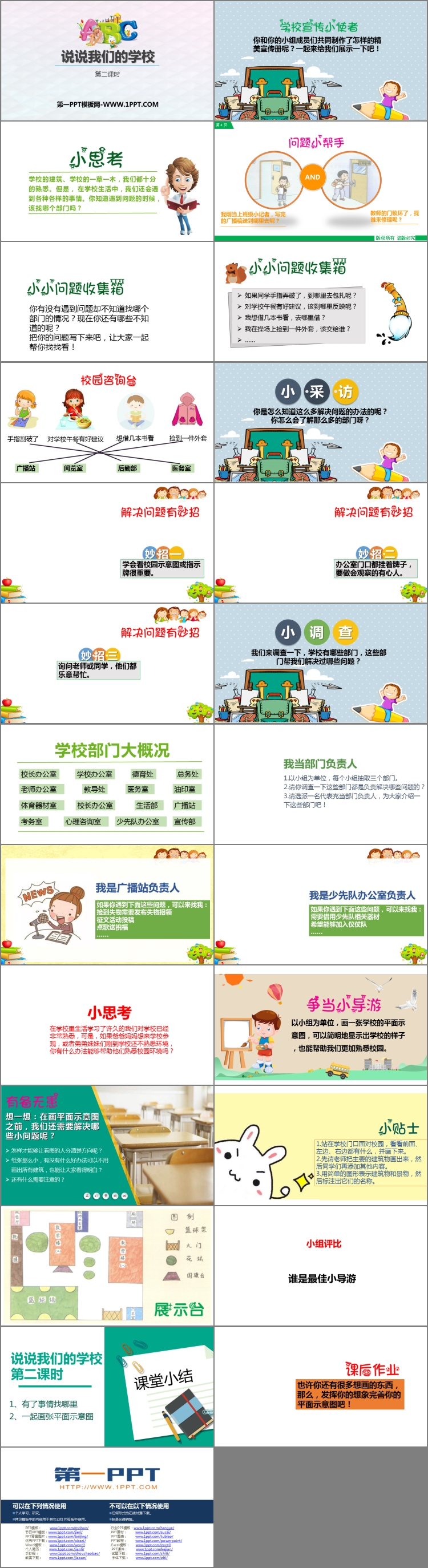 《说说我们的学校》PPT课件包含问题小帮手、小采访、小调查、课堂小结等内容。