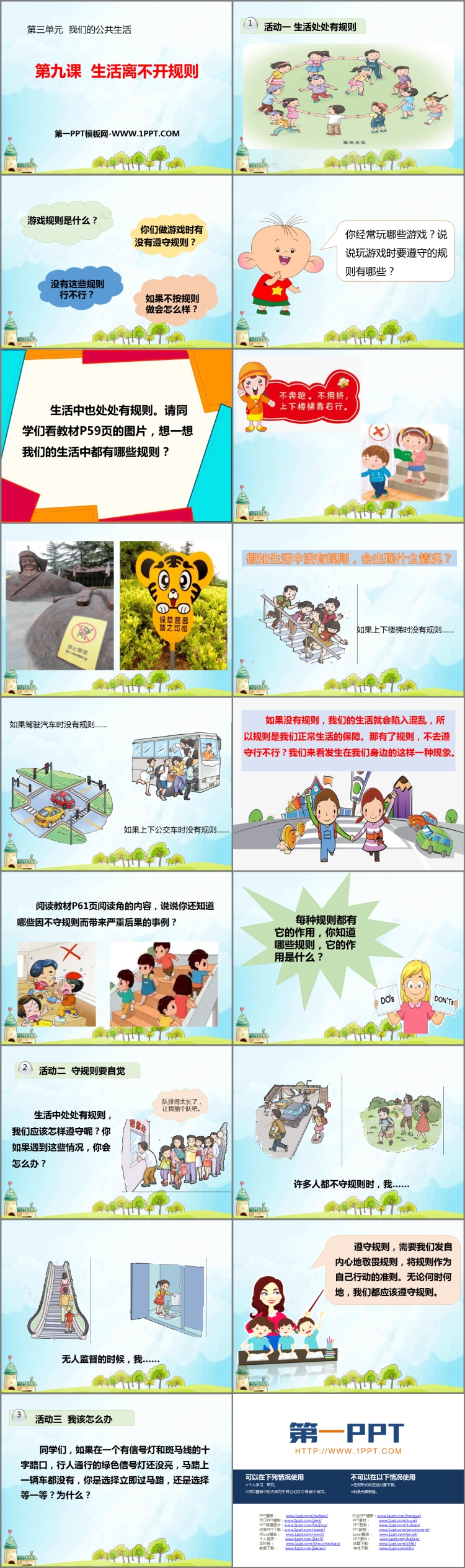 《生活离不开规则》PPT课件包含课堂活动、生活中的规则等内容。