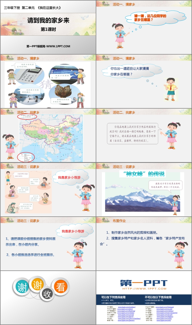 《请到我的家乡来》PPT课件包含课堂活动、布置作业等内容。
