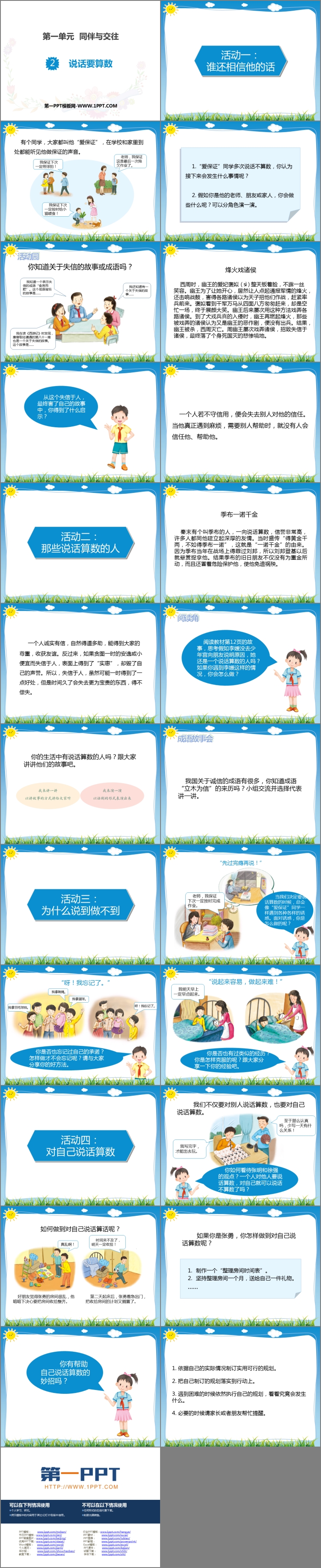 《说话要算数》PPT课件包含课堂活动、阅读角、成语故事会等内容。