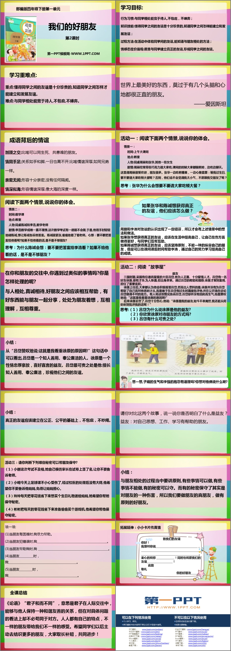 《我们的好朋友》PPT课件包含学习目标、课堂活动、全课总结等内容。