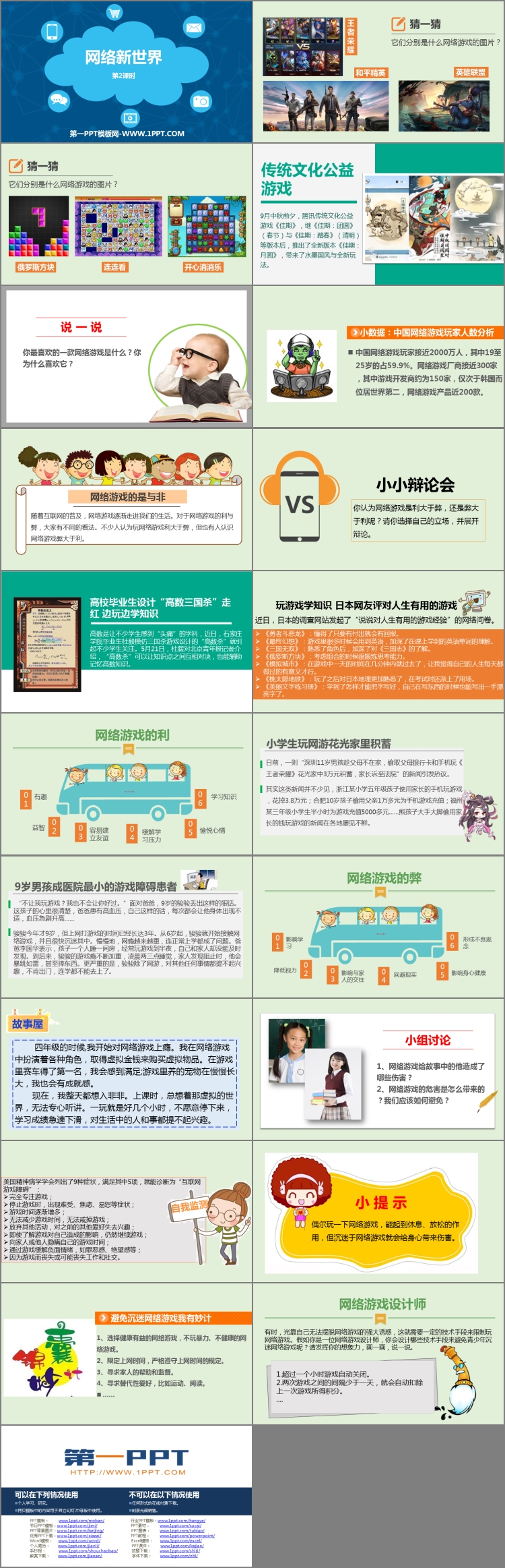 《网络新世界》PPT课件包含猜一猜、说一说、小小辩论会、小组讨论等内容。
