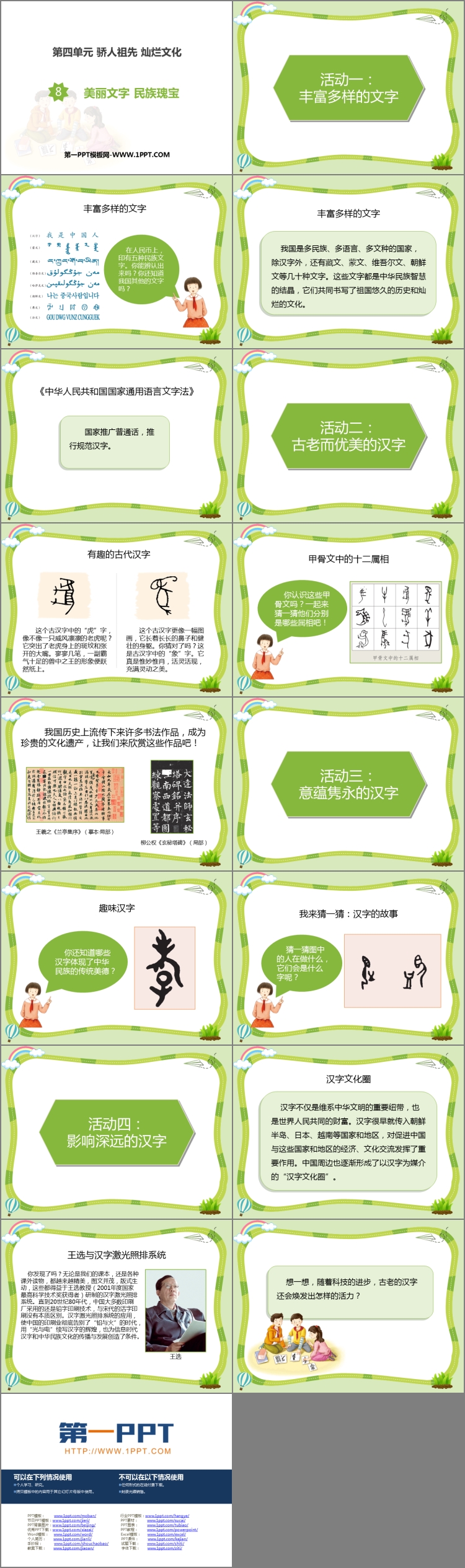 《美丽文字 民族瑰宝》PPT课件包含课堂活动、活动小结等内容。