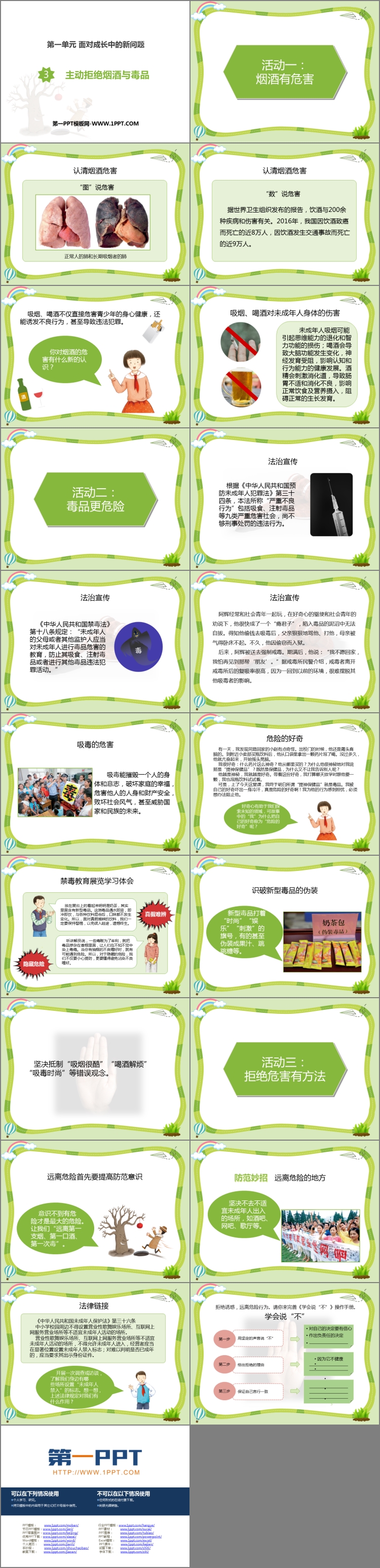 关键词:面对成长中的新问题PPT课件免费下载,主动拒绝烟酒与毒品PPT下载,.PPT格式;