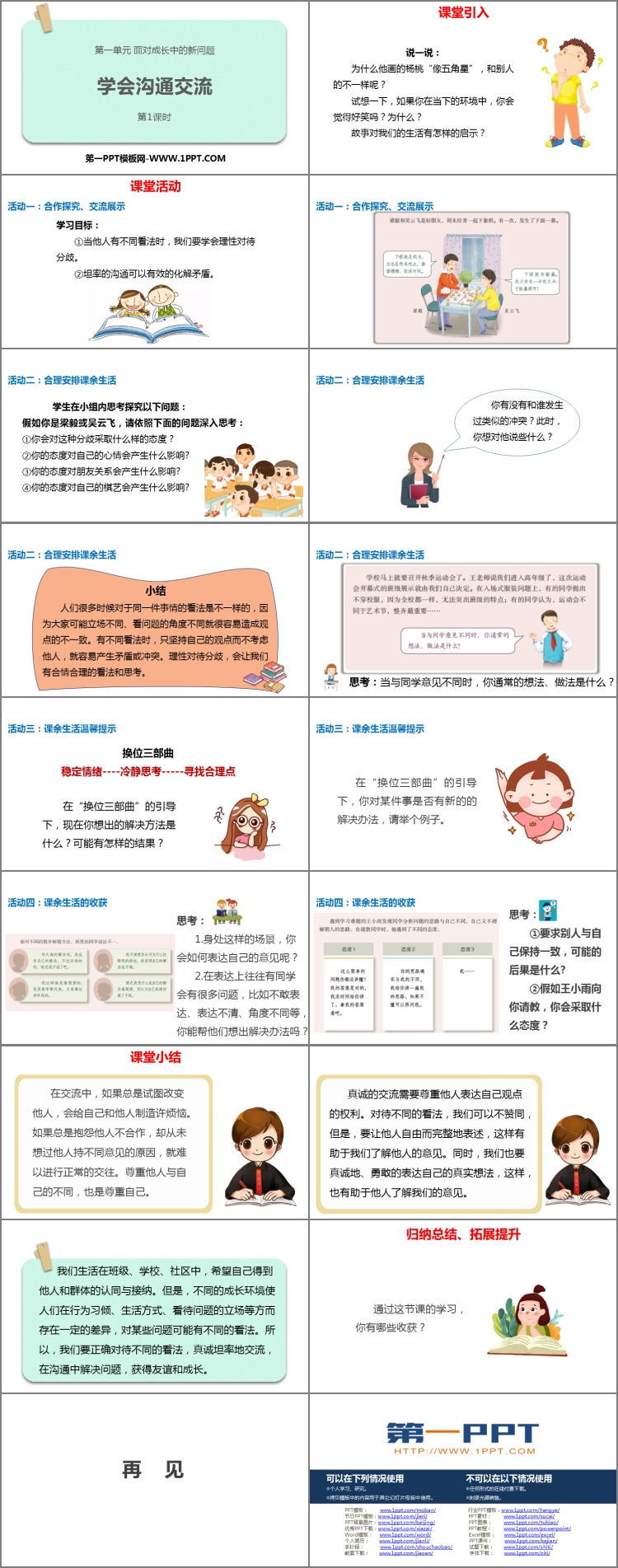 《学会沟通交流》PPT课件包含课堂引入、课堂活动、课堂小结等内容。