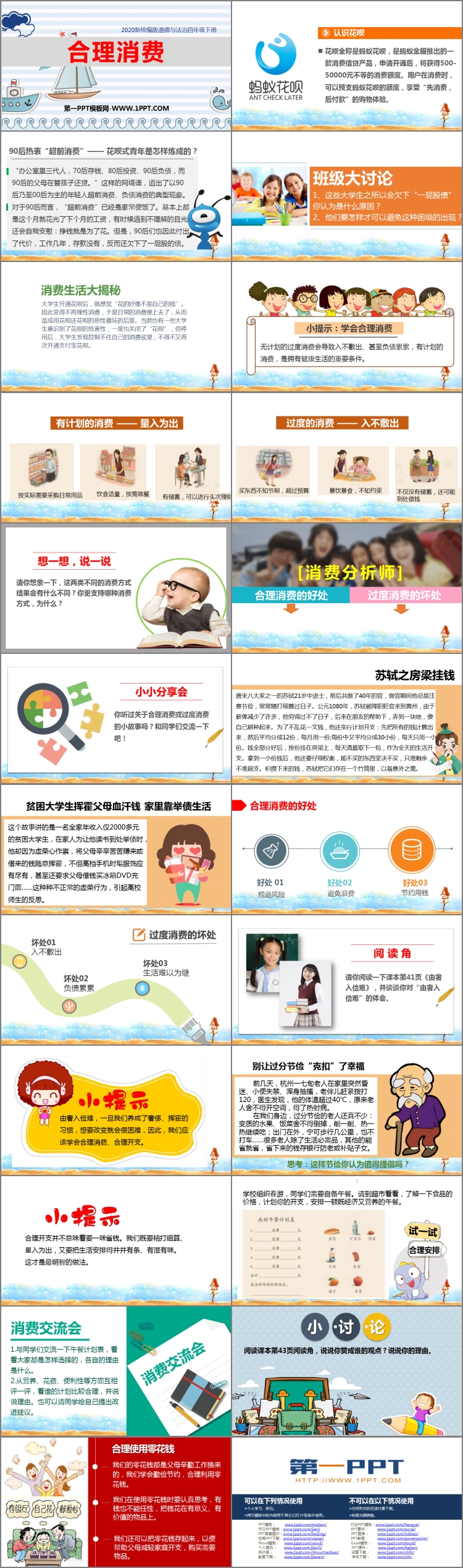 《合理消费》PPT课件包含班级大讨论、小小分享会、合理消费的好处、消费交流会等内容。
