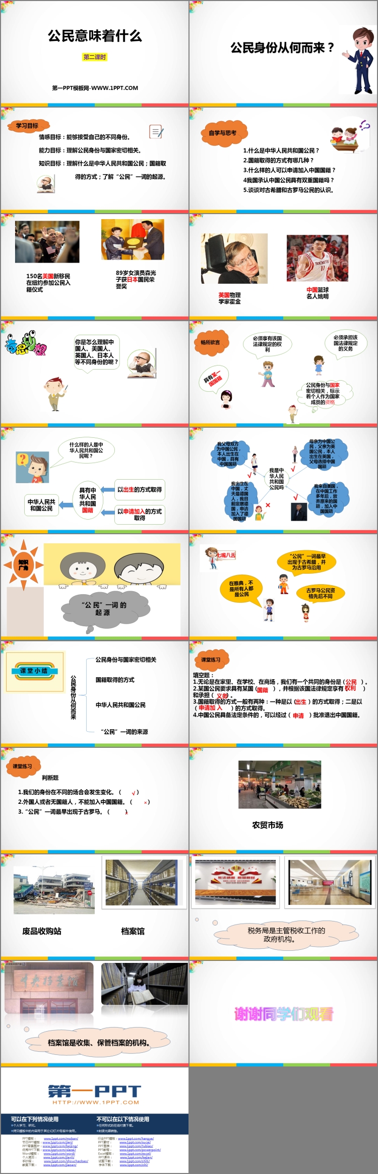 《公民意味着什么》PPT课件包含学习目标、自学与思考、课堂小结、课堂练习、知识窗等内容。
