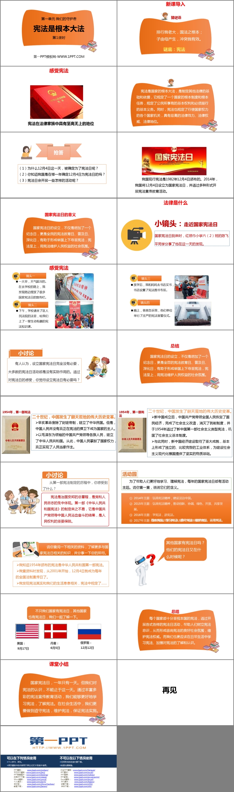 《宪法是根本法》PPT课件包含新课导入、课堂解析、总结、课堂小结等内容。