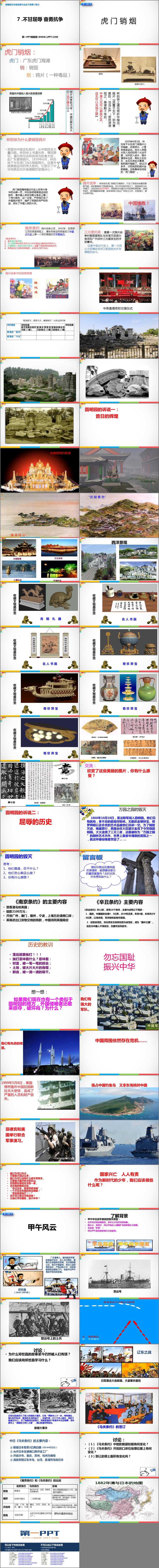 《不甘屈辱 奋勇抗争》PPT课件包含虎门销烟、圆明园的诉说、甲午风云等内容。