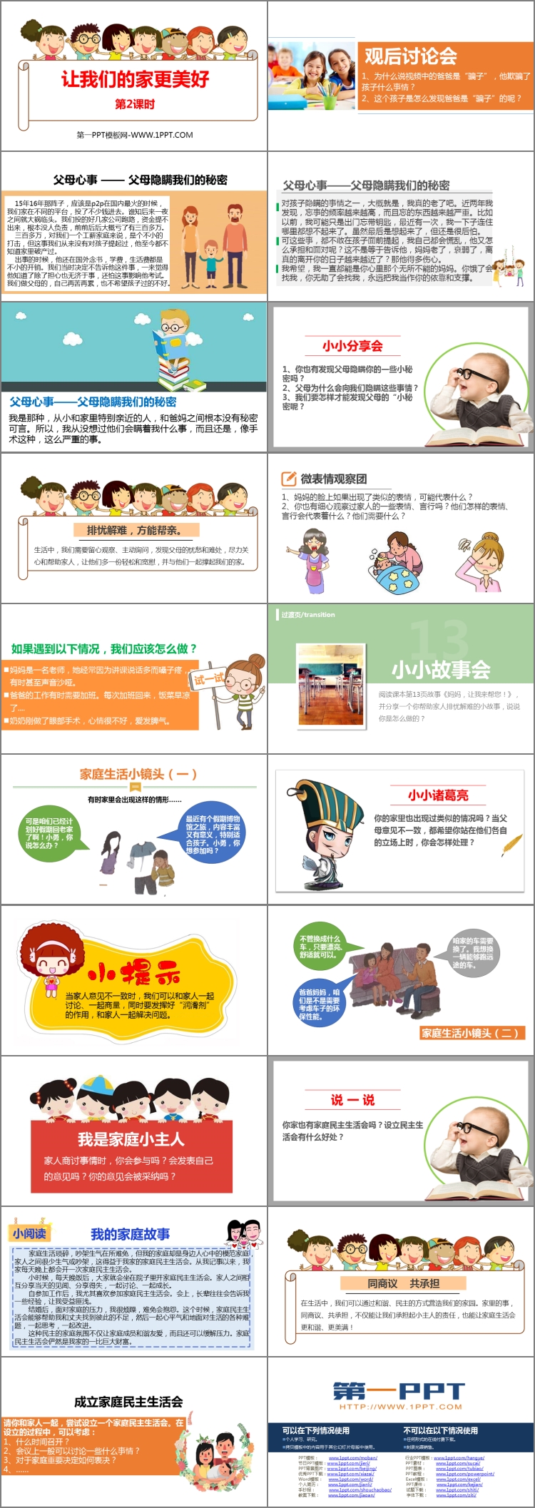 《让我们的家更美好》PPT课件包含小小分享会、小小故事会、小阅读、同商议共承担等内容。