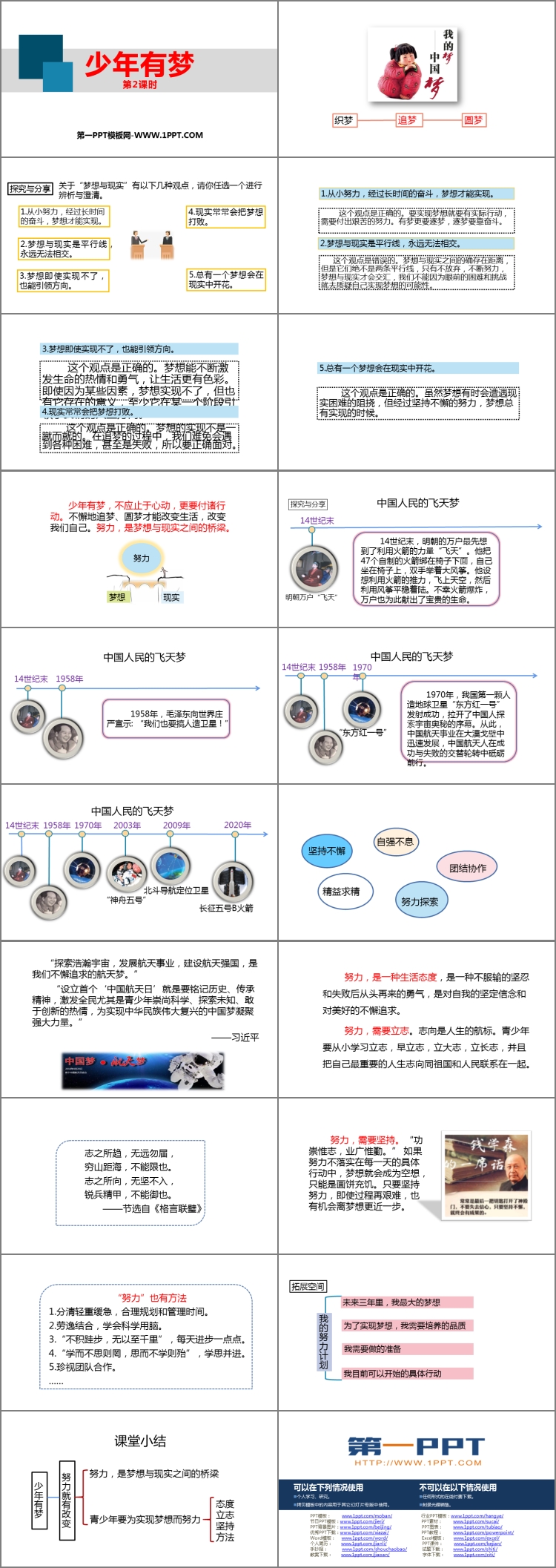 《少年有梦》PPT课件包含探究与分享、拓展空间、课堂小结等内容。