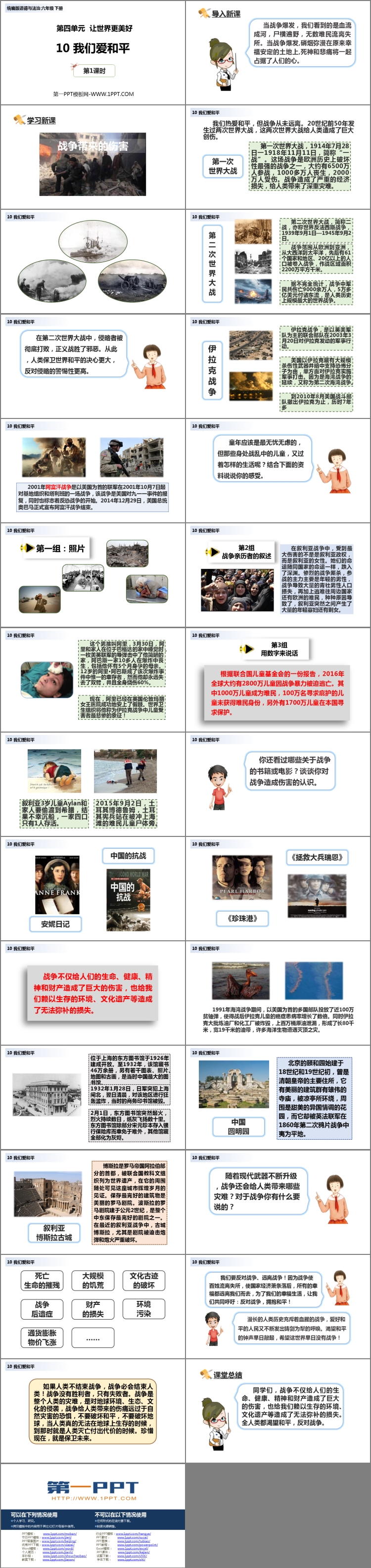 《我们爱和平》PPT课件包含导入新课、学习新课、课堂总结等内容。