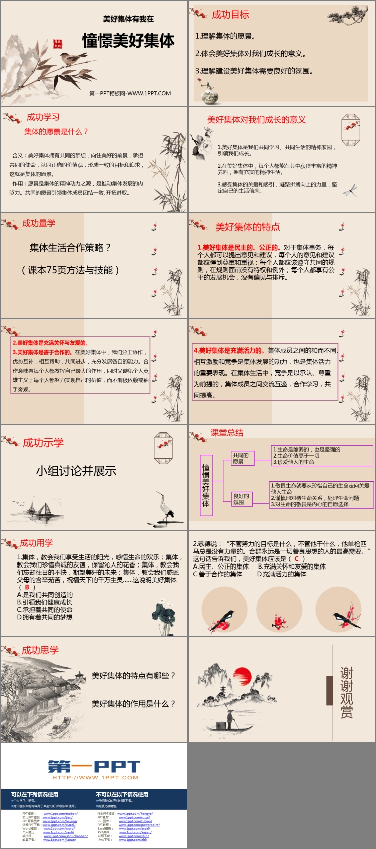 《憧憬美好集体》PPT课件包含成功目标、成功学习、课堂总结、成功用学等内容。