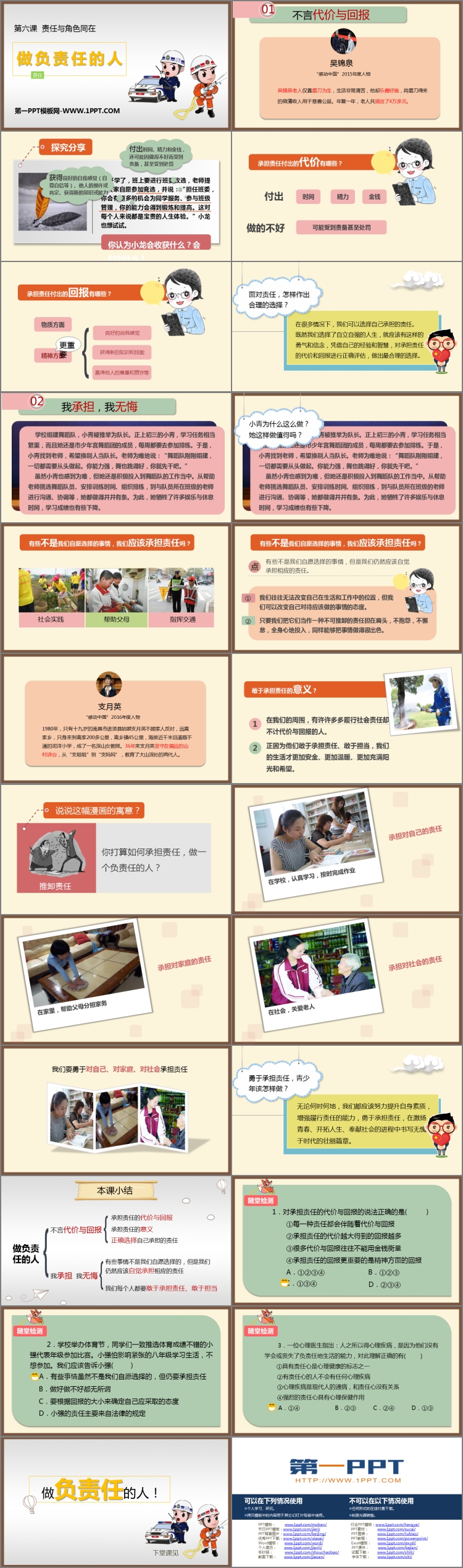 《做负责任的人》PPT课件包含不言代价与回报、我承担我无悔、本课小结、随堂检测等内容。