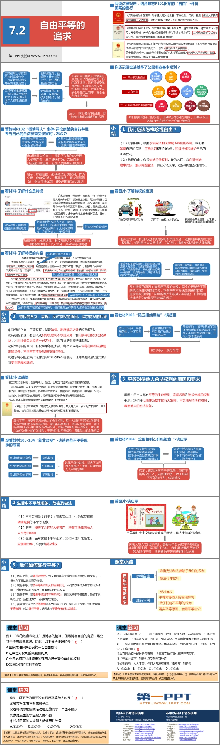 《自由平等的追求》PPT课件包含珍视自由、践行平等、课堂小结、课堂练习等内容。