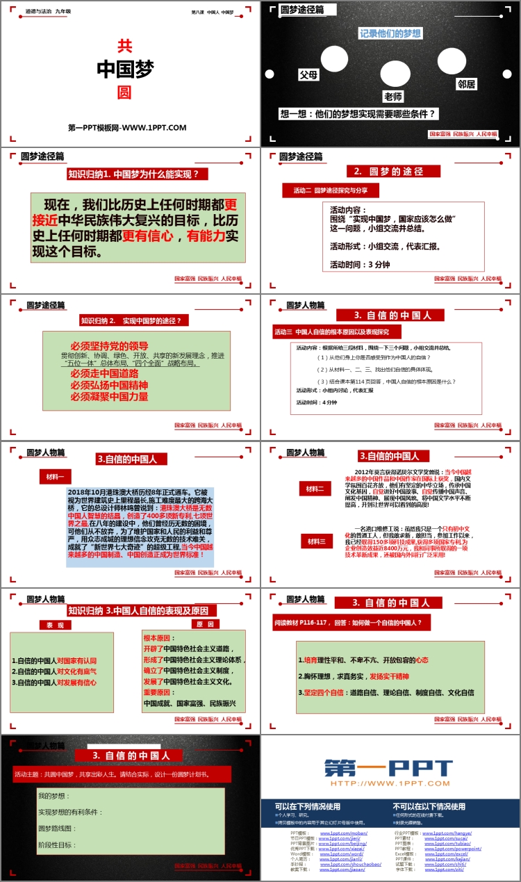 《共圆中国梦》PPT课件包含圆梦途径篇、圆梦人物篇等内容。