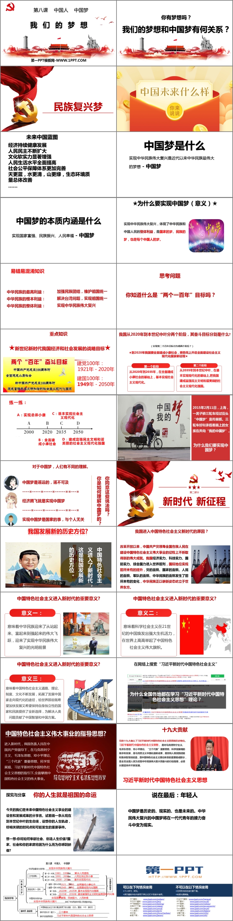 《我们的梦想》PPT课件包含民族复兴梦、新时代新征程、课堂小结等内容。