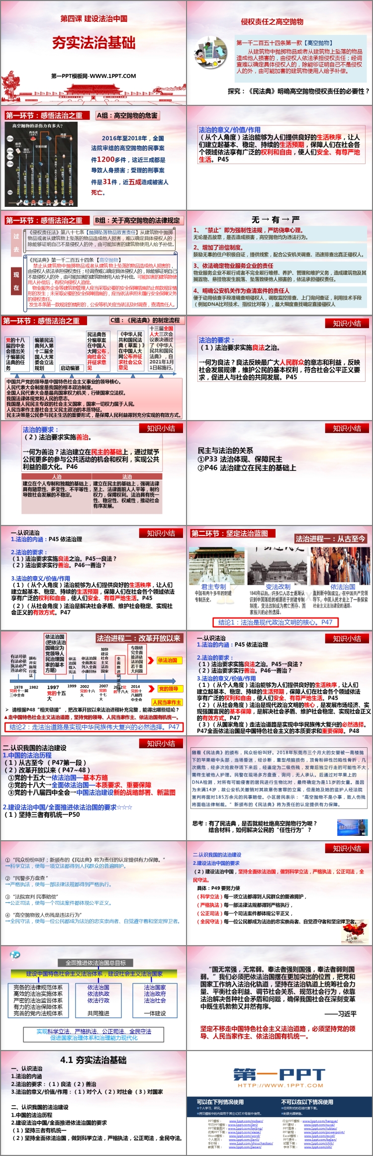 《夯实法治基础》PPT课件包含感悟法治之重、坚定法治蓝图、知识小结等内容。