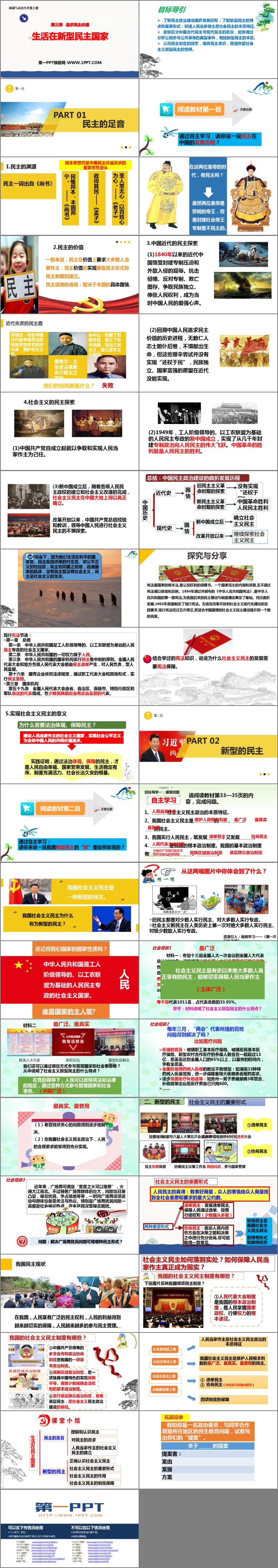 《生活在新型民主国家》PPT课件包含目标导引、民主的足音、新型的民主、课堂小结等内容。