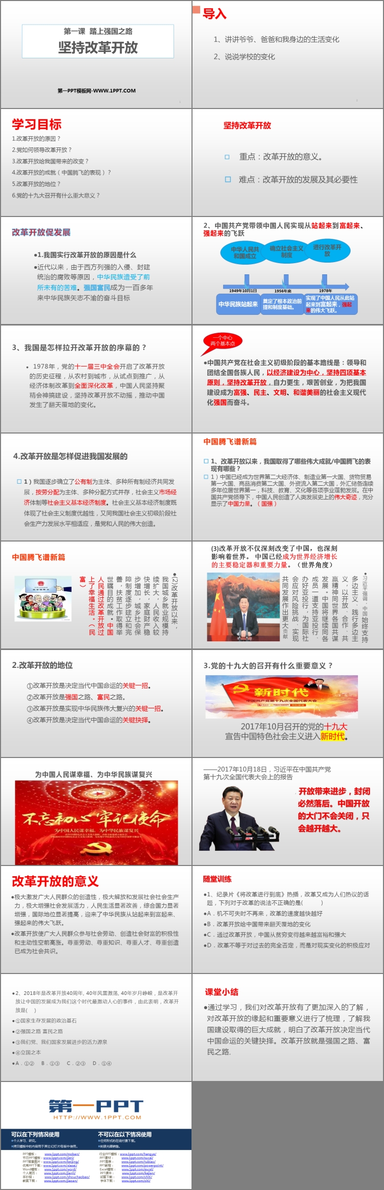 《坚持改革开放》PPT课件包含学习目标、随堂训练、课堂小结等内容。