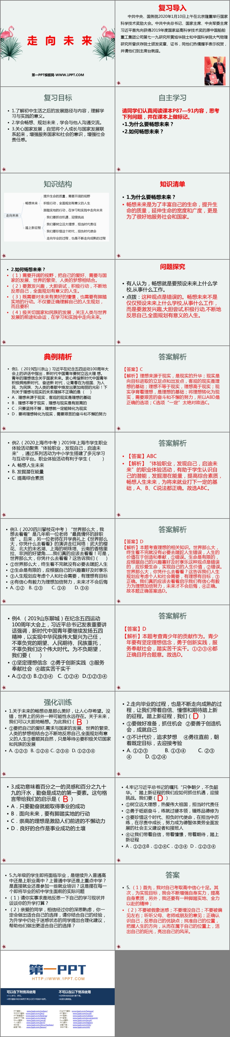 《走向未来》PPT课件包含复习导入、复习目标、自主学习、知识清单、问题探究、强化训练等内容。