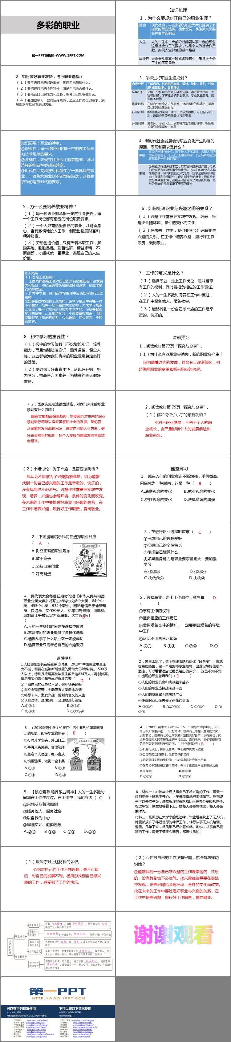 《多彩的职业》PPT课件包含知识梳理、课前预习、随堂练习、课后提升等内容。