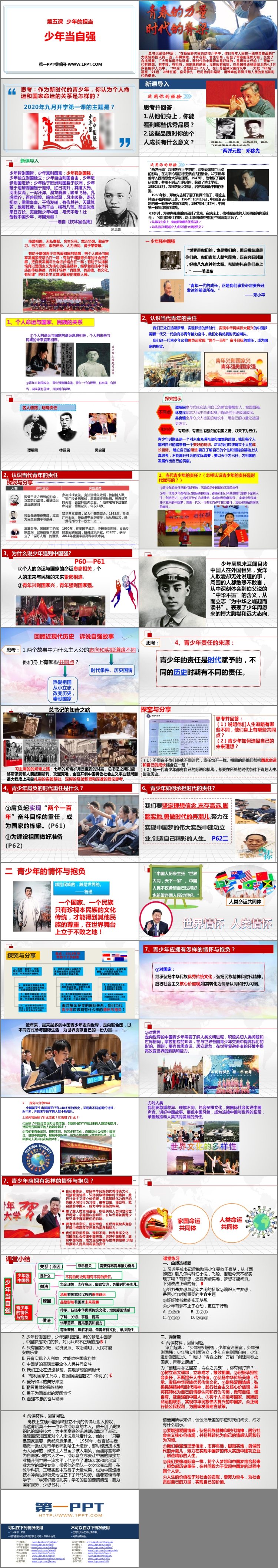 《少年当自强》PPT课件包含新课导入、探究与分享、课堂小结、课堂练习等内容。
