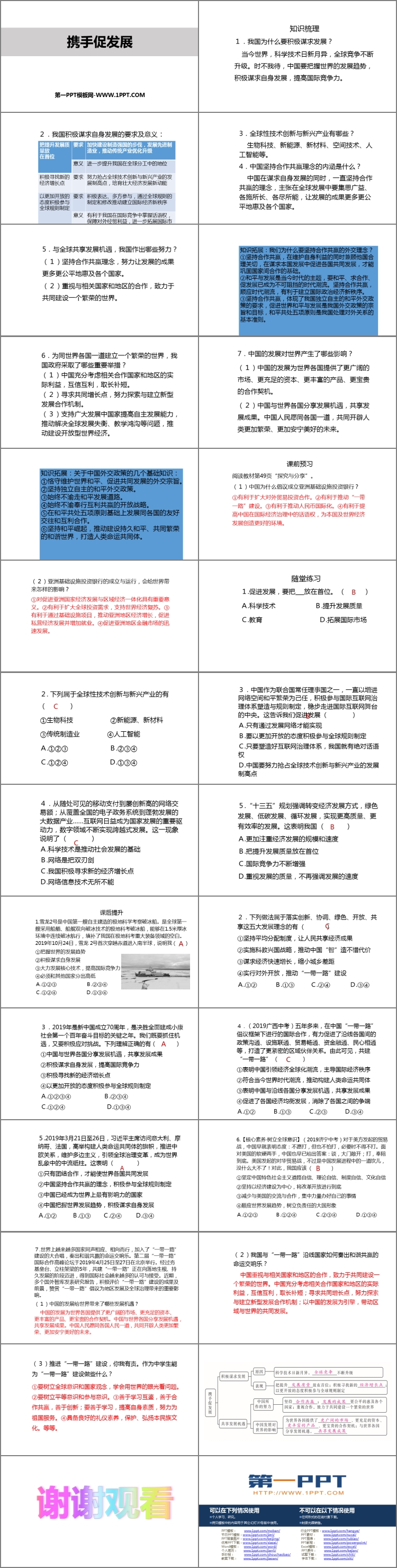 《携手促发展》PPT课件包含知识梳理、课前预习、随堂练习、课后提升等内容。