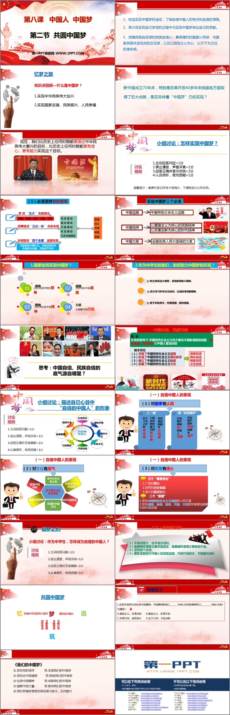 知道实现中国梦的途径;了解自信中国人的特点和自信的源泉。