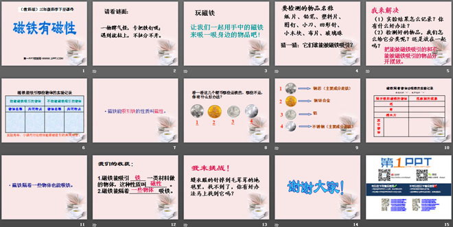 关键词:磁铁教学课件,磁铁有磁性教学课件,教科版三年级下册科学PPT课件下载,三年级科学幻灯片课件下载,磁铁PPT课件下载,磁铁有磁性PPT课件下载,.PPT格式;