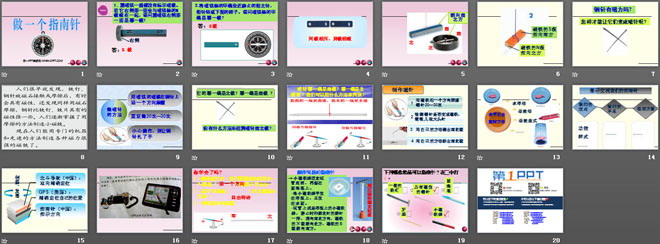 关键词:磁铁教学课件,做一个指南针教学课件,教科版三年级下册科学PPT课件下载,三年级科学幻灯片课件下载,磁铁PPT课件下载,做一个指南针PPT课件下载,.PPT格式;
