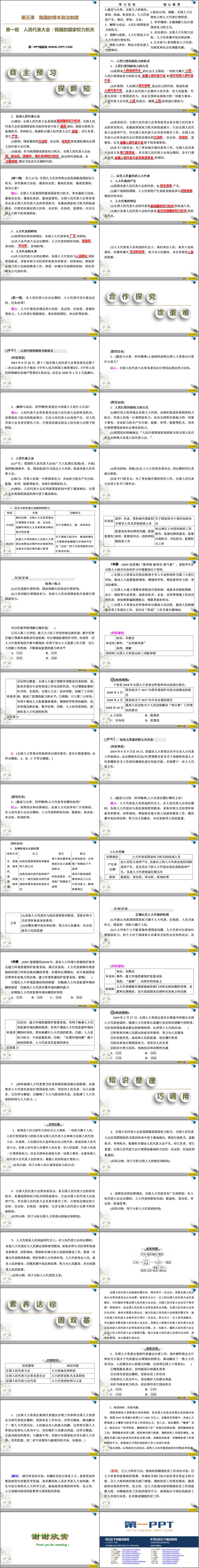 1.描述与分类:全国人大的地位、职权、构成、常设机关,人大代表的产生、地位、职权、义务。