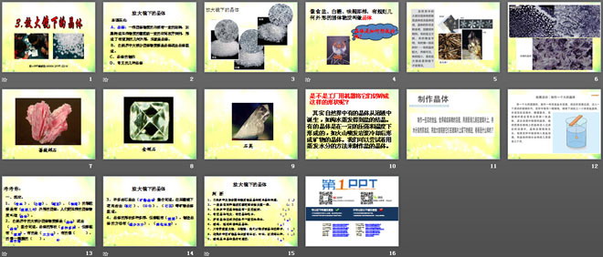 关键词:微小世界教学课件,放大镜下的晶体教学课件,教科版六年级下册科学PPT课件下载,六年级科学幻灯片课件下载,微小世界PPT课件下载,放大镜下的晶体PPT课件下载,.PPT格式;