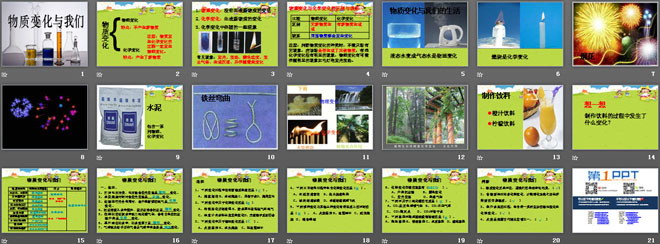 关键词:物质的变化教学课件,物质变化与我们教学课件,教科版六年级下册科学PPT课件下载,六年级科学幻灯片课件下载,物质的变化PPT课件下载,物质变化与我们PPT课件下载,.PPT格式;
