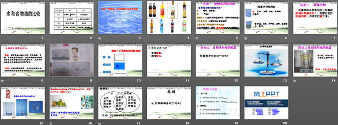 关键词:水和空气教学课件,水和食物油的比较教学课件,教科版三年级上册科学PPT课件下载,三年级科学幻灯片课件下载,水和空气PPT课件下载,水和食物油的比较PPT课件下载,.PPT格式;