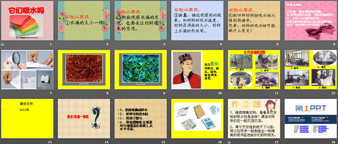 关键词:我们周围的材料教学课件,它们吸水吗教学课件,教科版三年级上册科学PPT课件下载,三年级科学幻灯片课件下载,我们周围的材料PPT课件下载,它们吸水吗PPT课件下载,.PPT格式;
