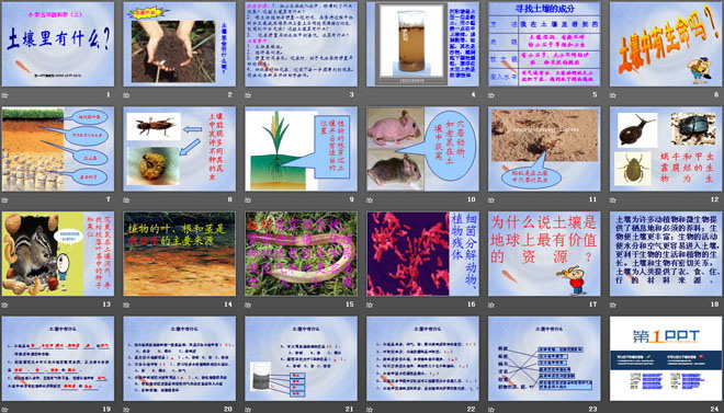 关键词:地球表面及其变化教学课件,土壤中有什么教学课件,教科版五年级上册科学PPT课件下载,五年级科学幻灯片课件下载,地球表面及其变化PPT课件下载,土壤中有什么PPT课件下载,.PPT格式;